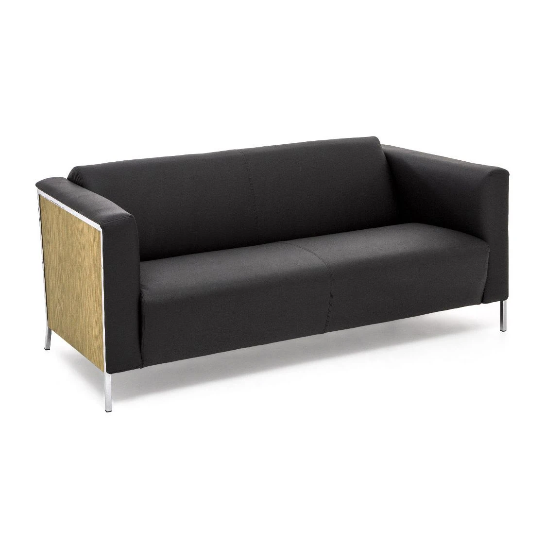 Диван 2-х местный Vispo Wood Натуральная кожа, Черный/Дуб светлый входит в комплект