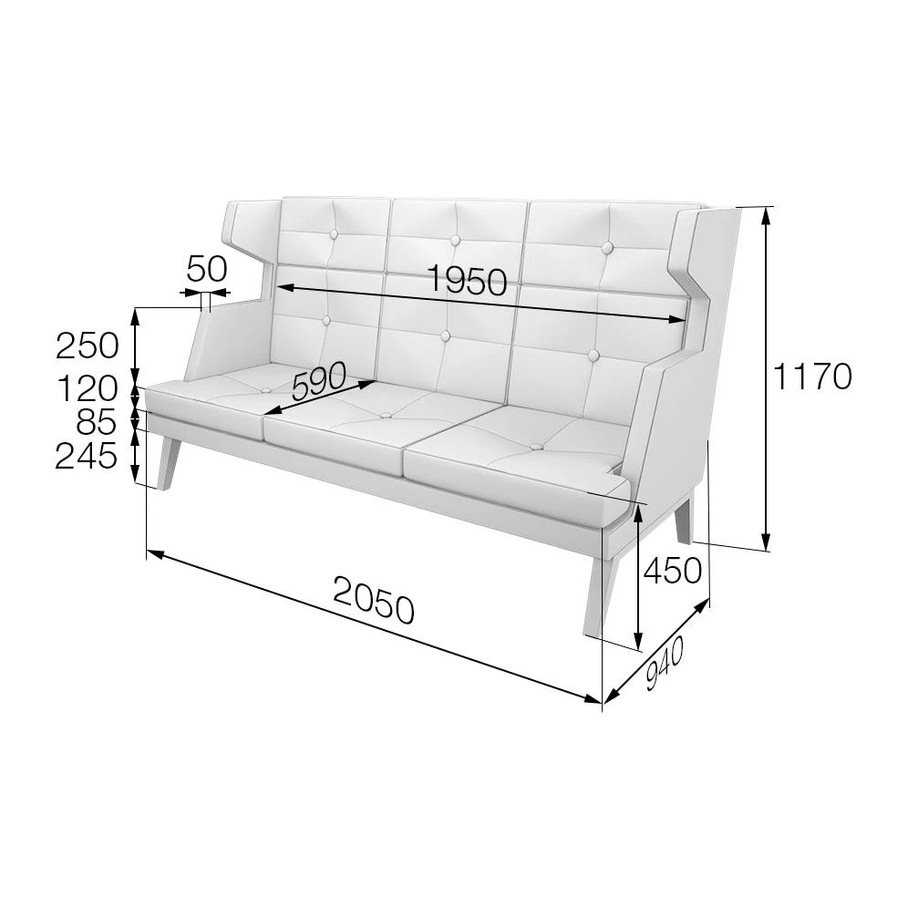 Диван 3-местный высокий Bev3H Беверли MVK