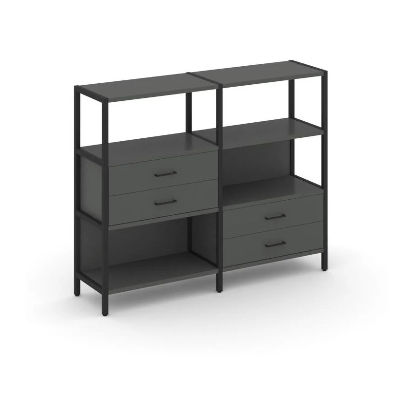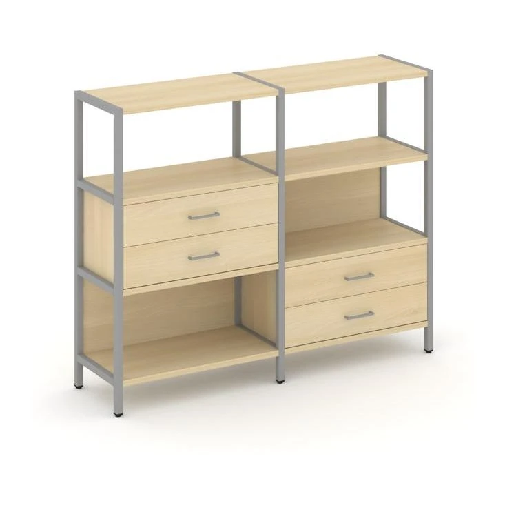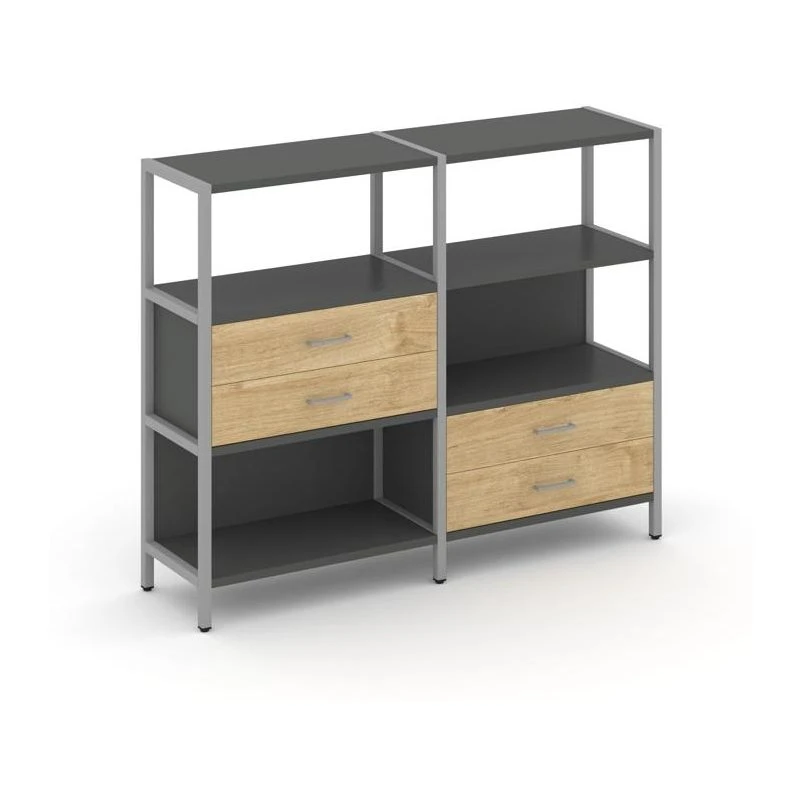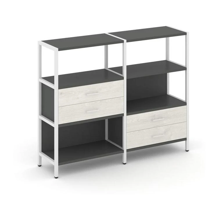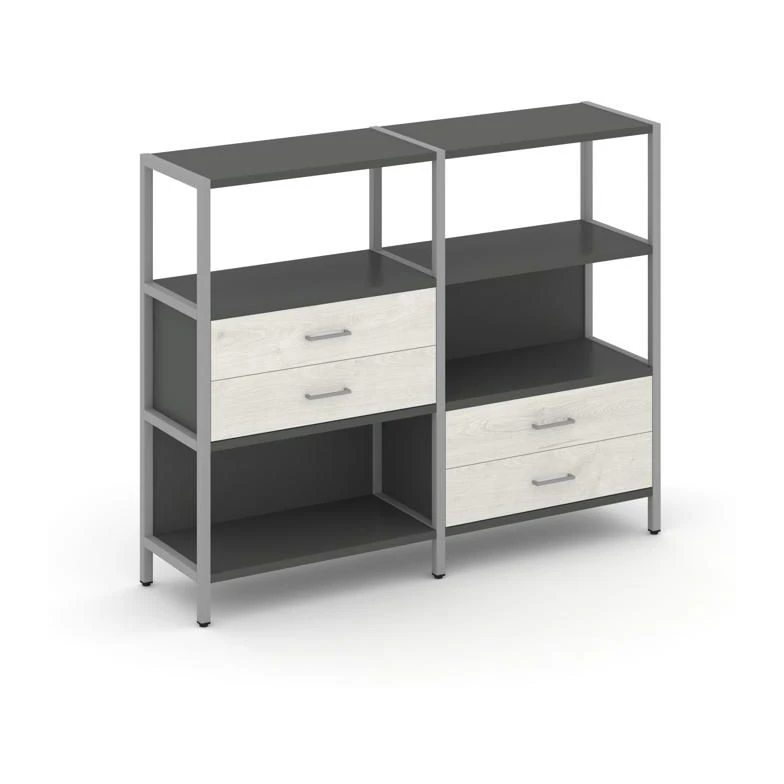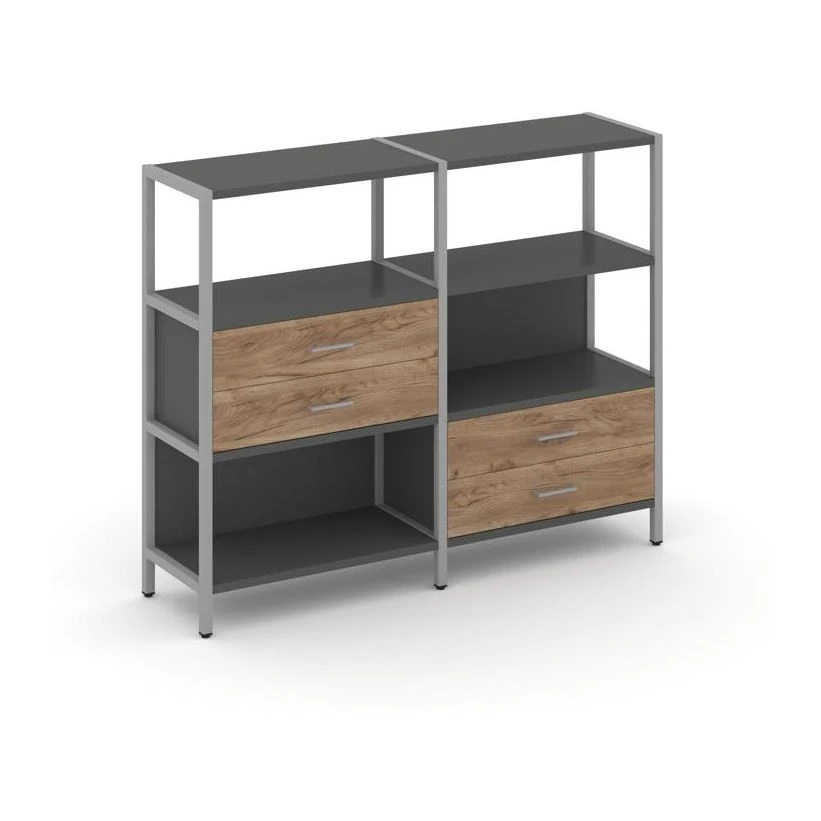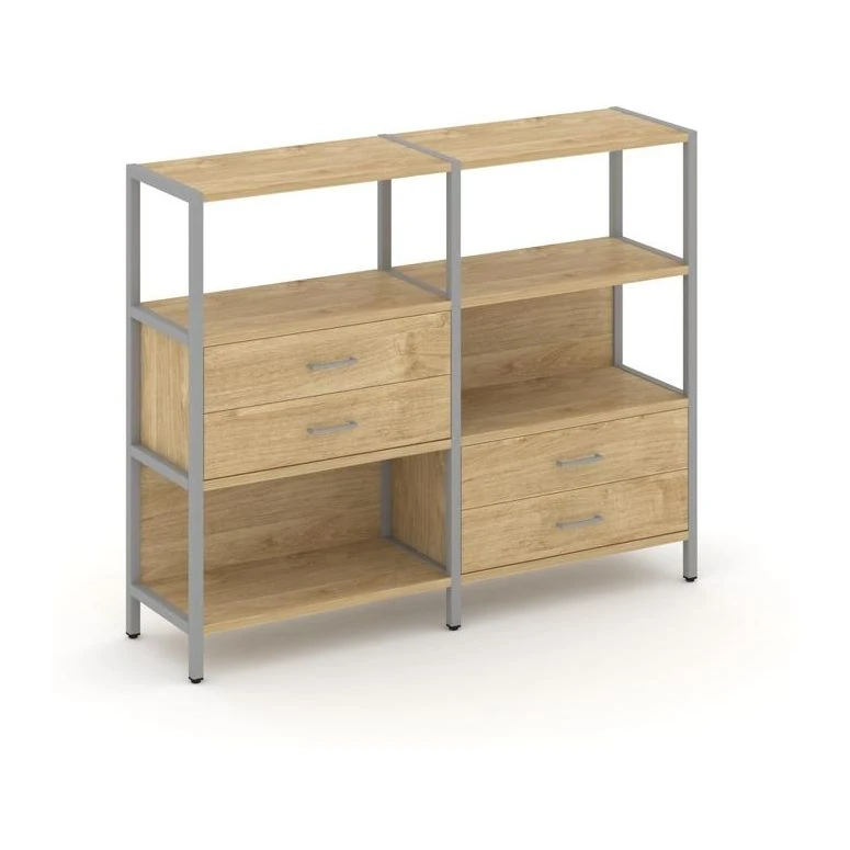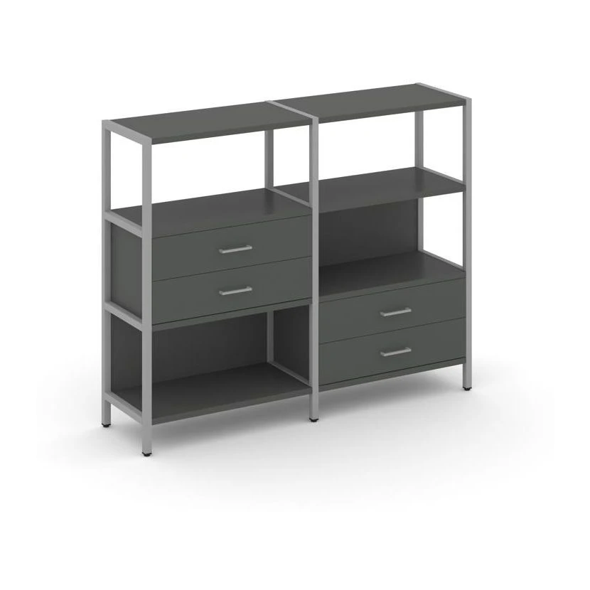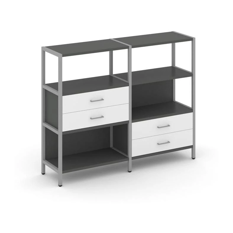 Двухсекционный стеллаж трехярусный с ящиками на двух ярусах 1590х400х1246 Шелф Систем / Shelf System