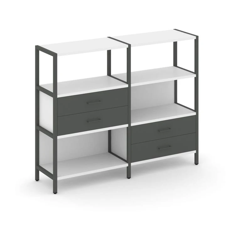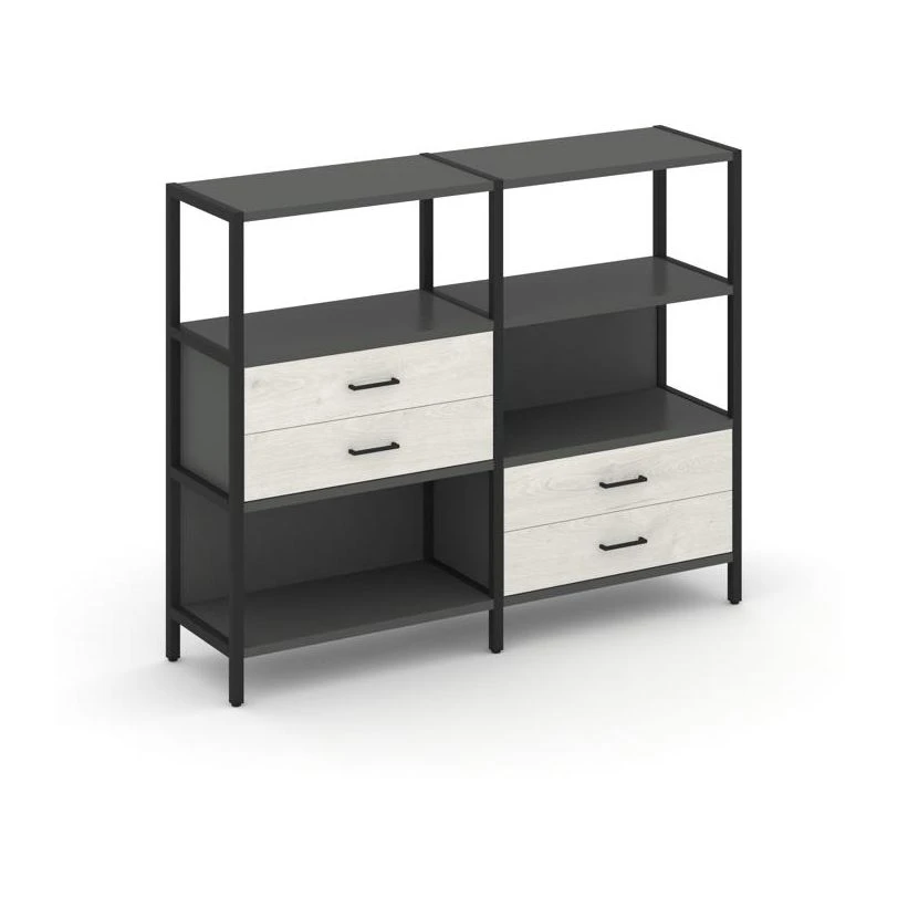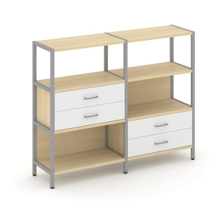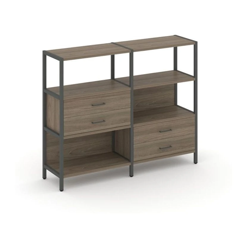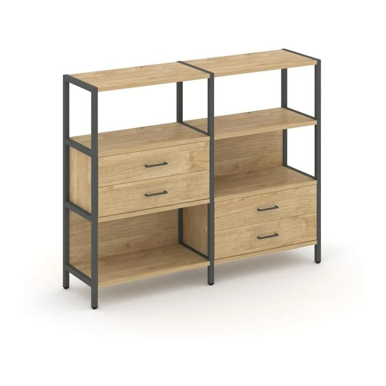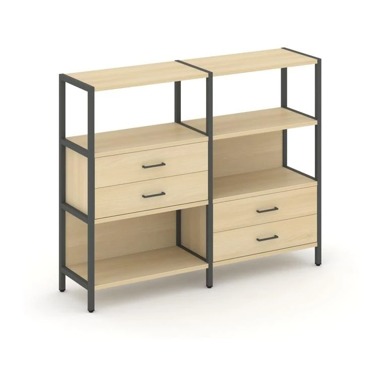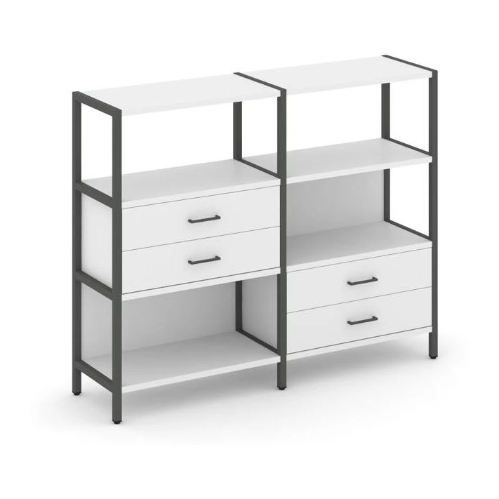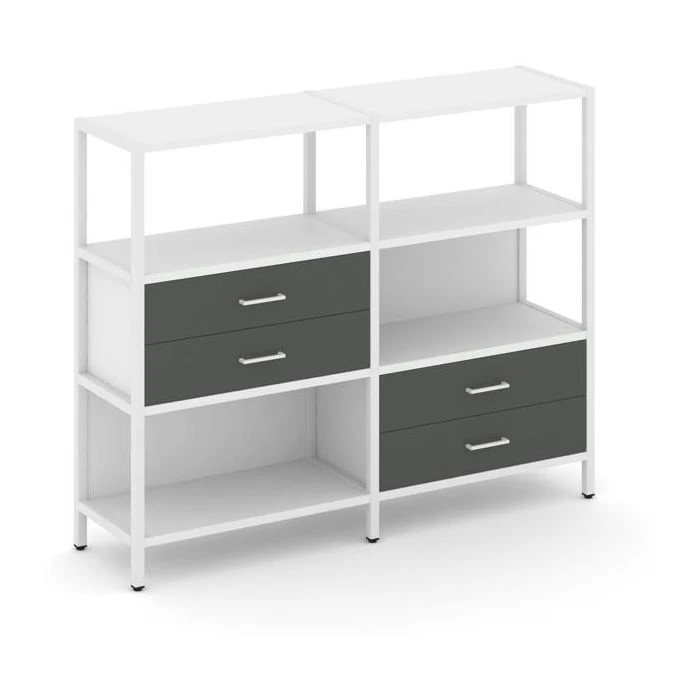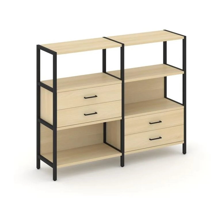 Двухсекционный стеллаж трехярусный с ящиками на двух ярусах 1590х400х1246 Шелф Систем / Shelf System