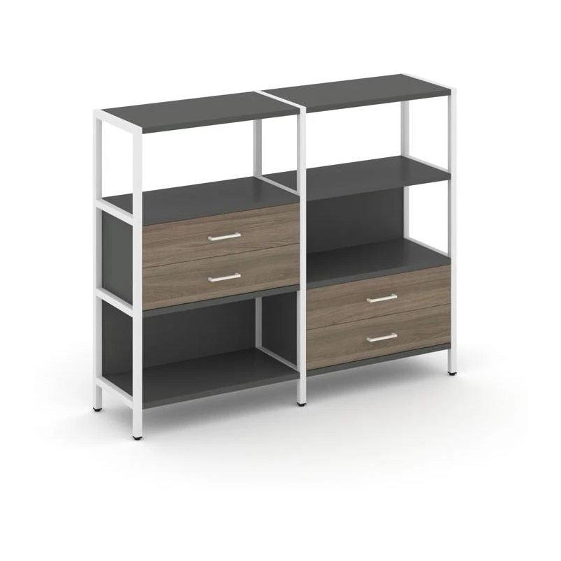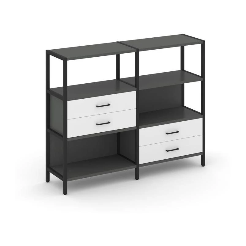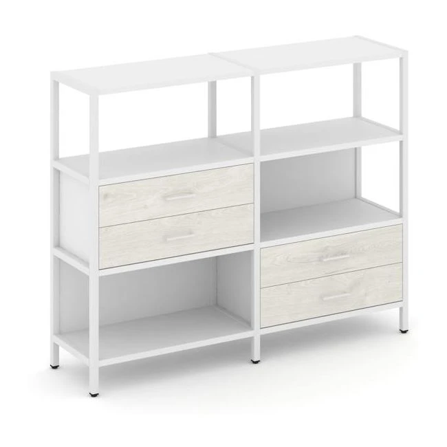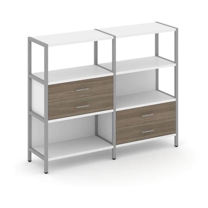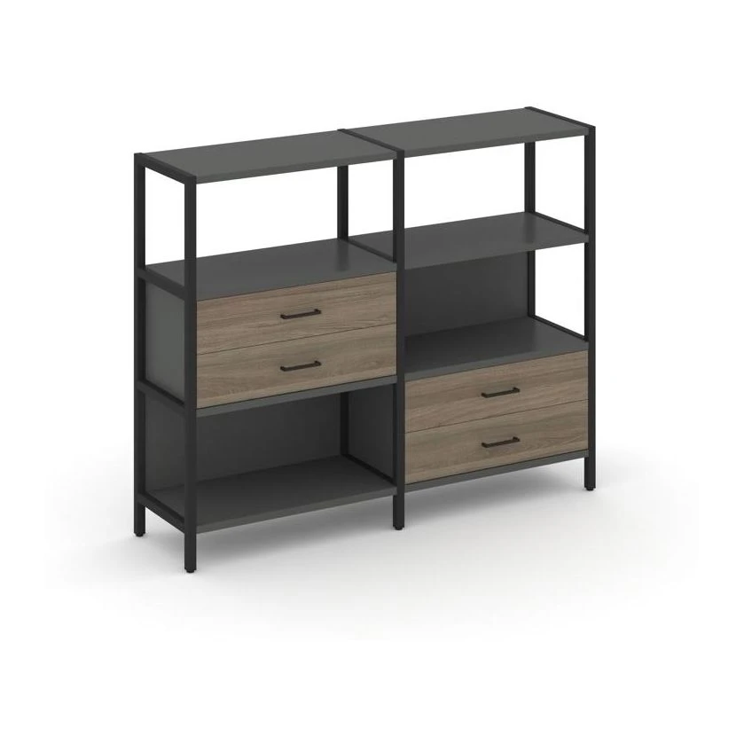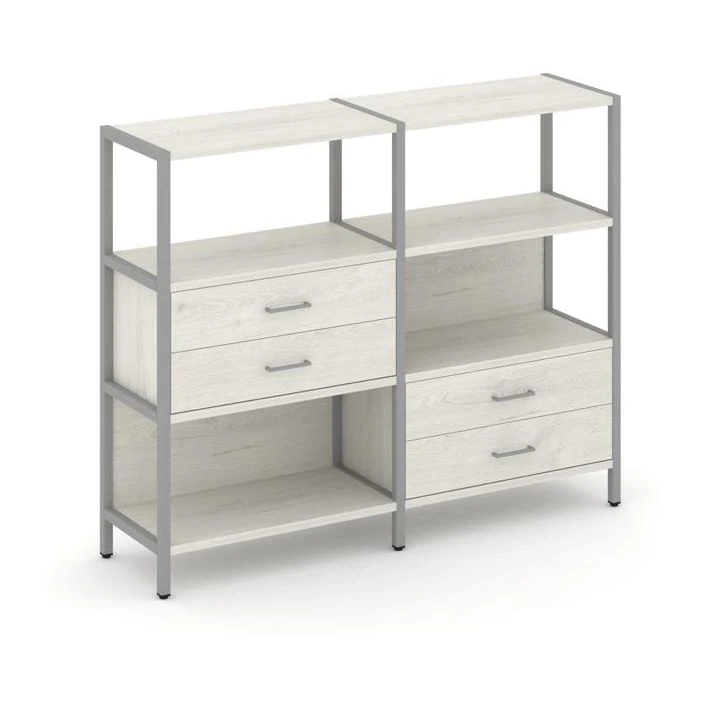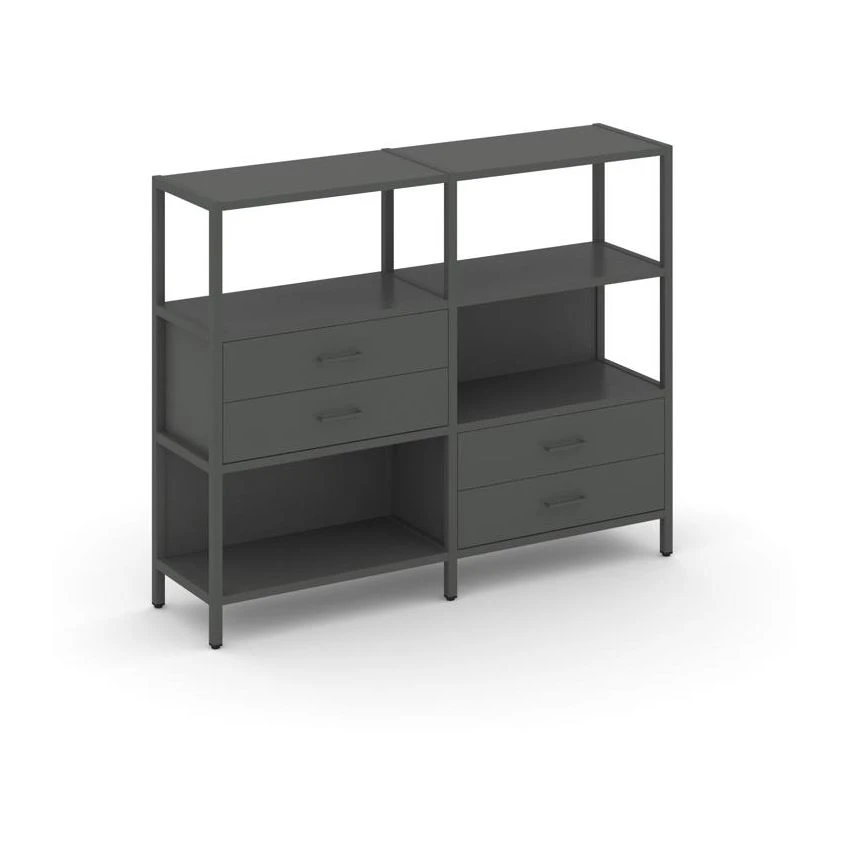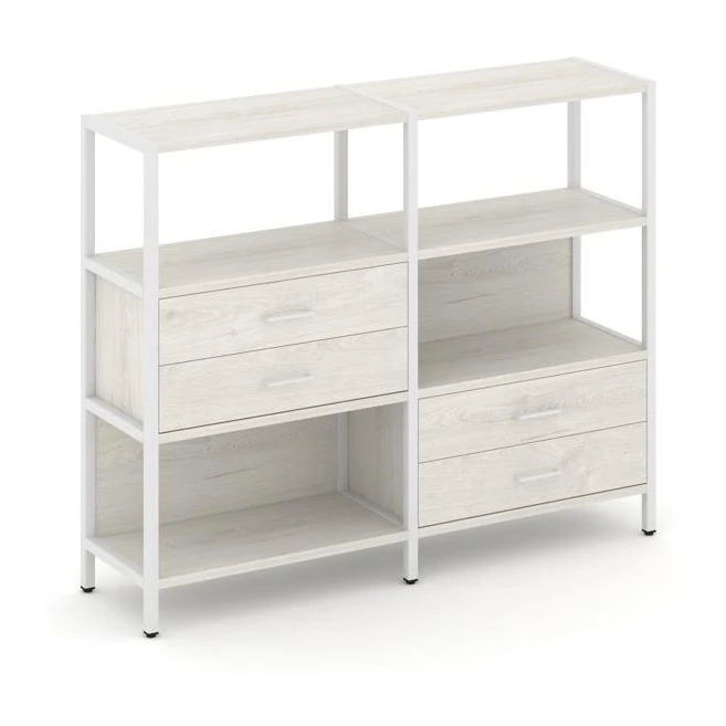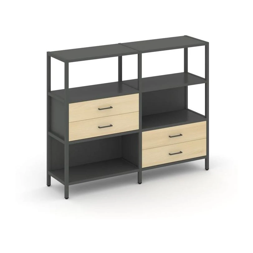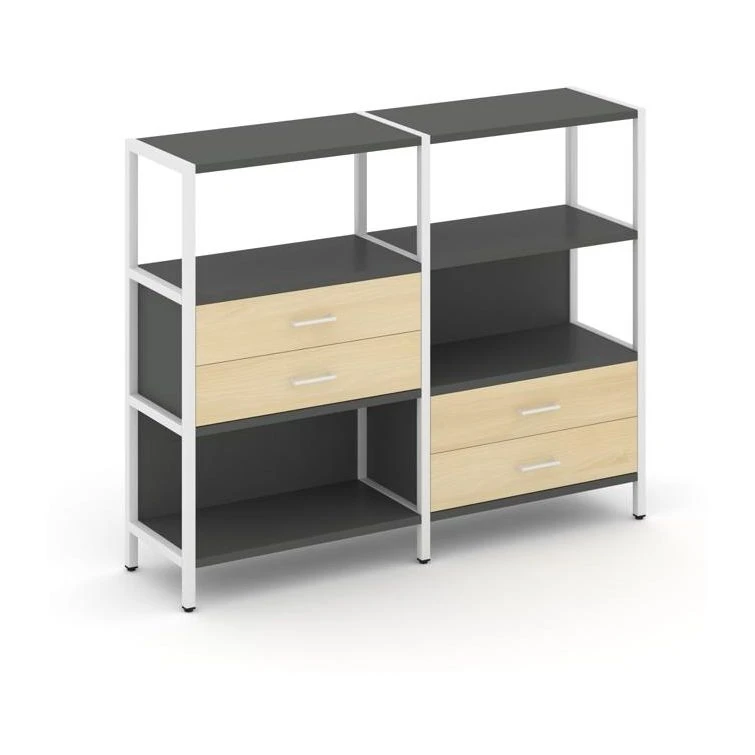 Двухсекционный стеллаж трехярусный с ящиками на двух ярусах 1590х400х1246 Шелф Систем / Shelf System