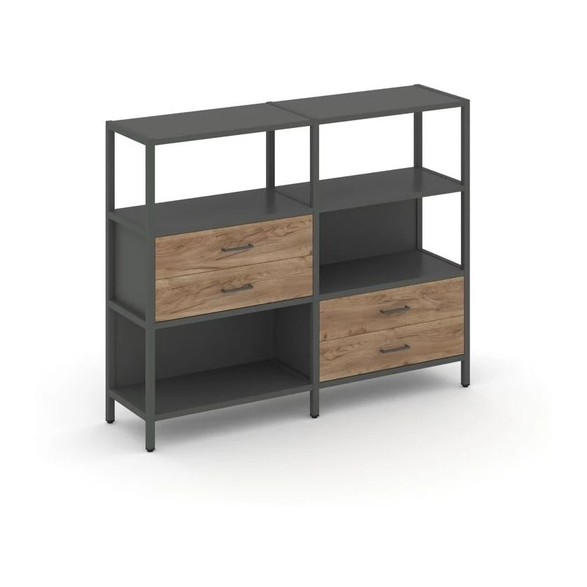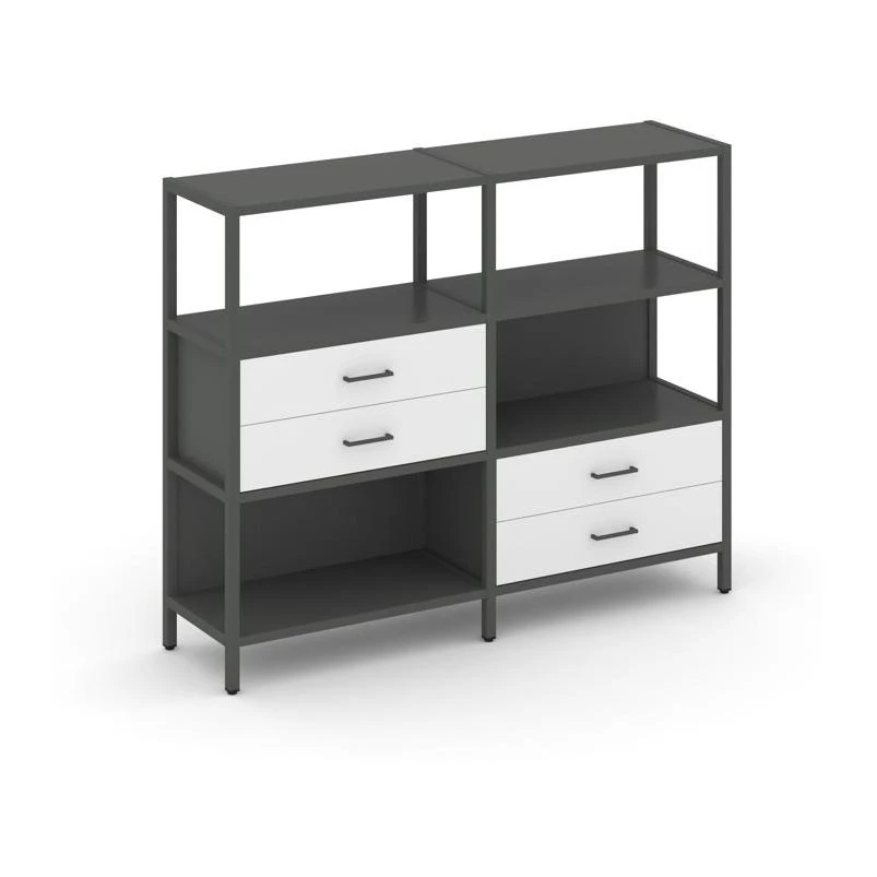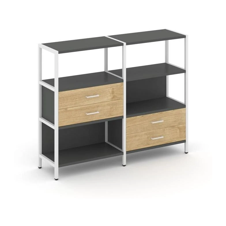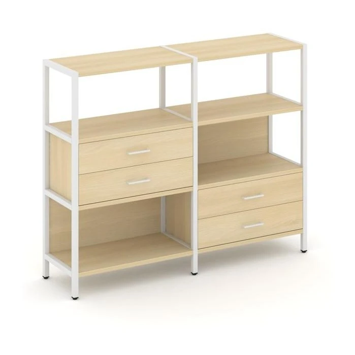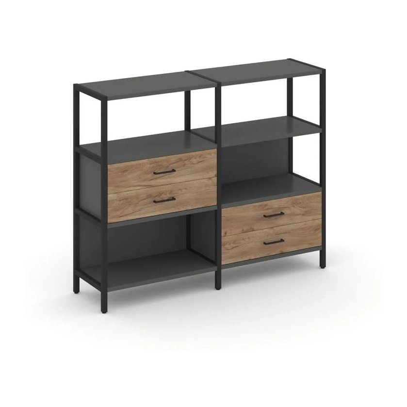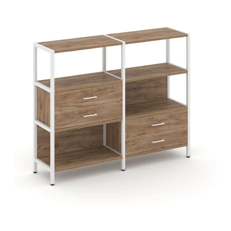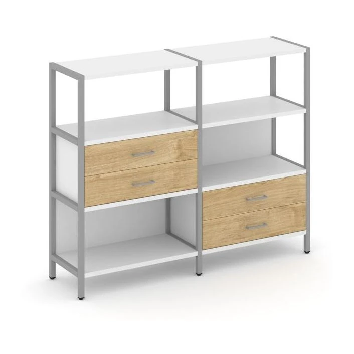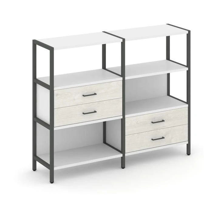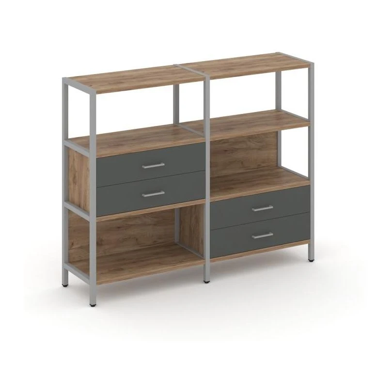 Двухсекционный стеллаж трехярусный с ящиками на двух ярусах 1590х400х1246 Шелф Систем / Shelf System