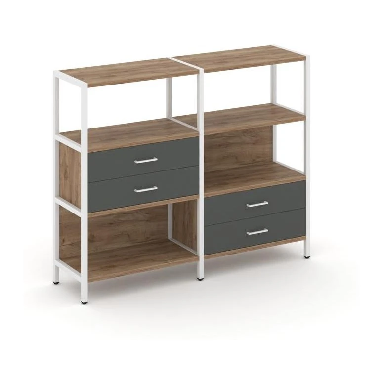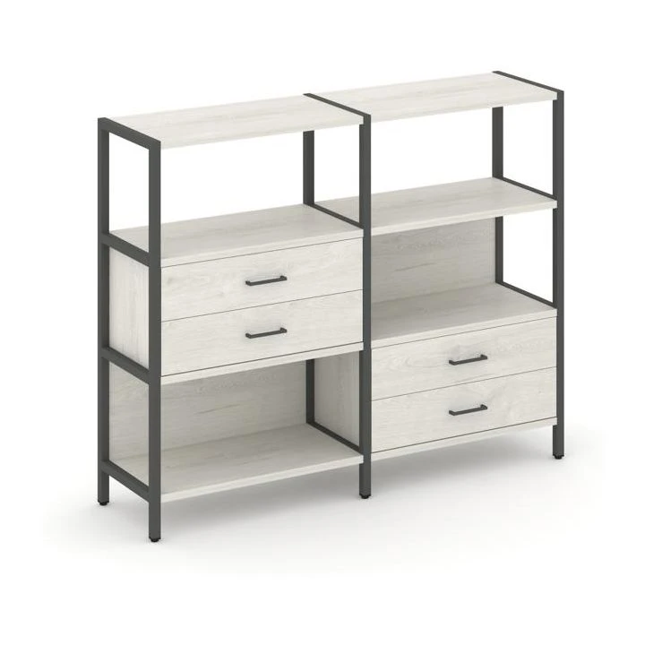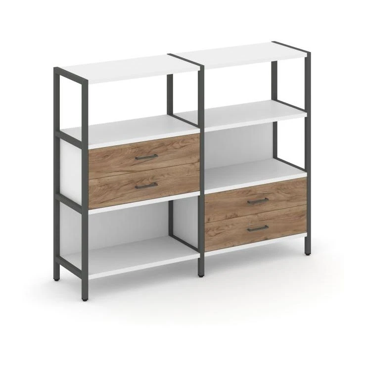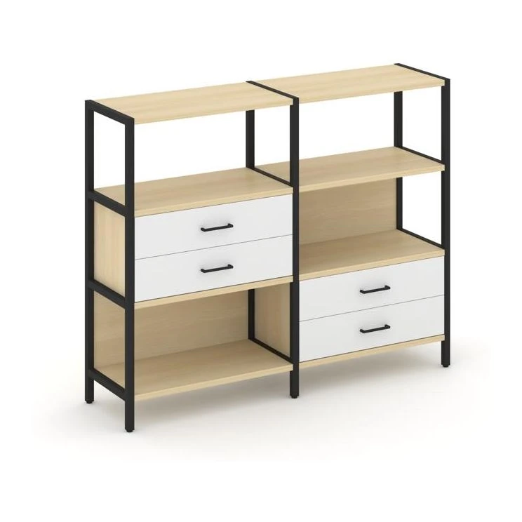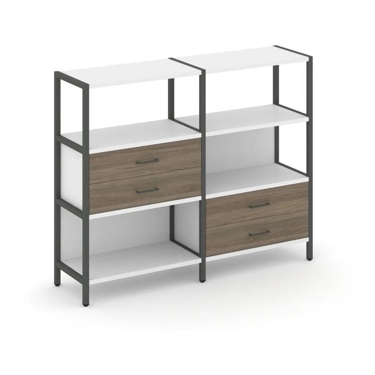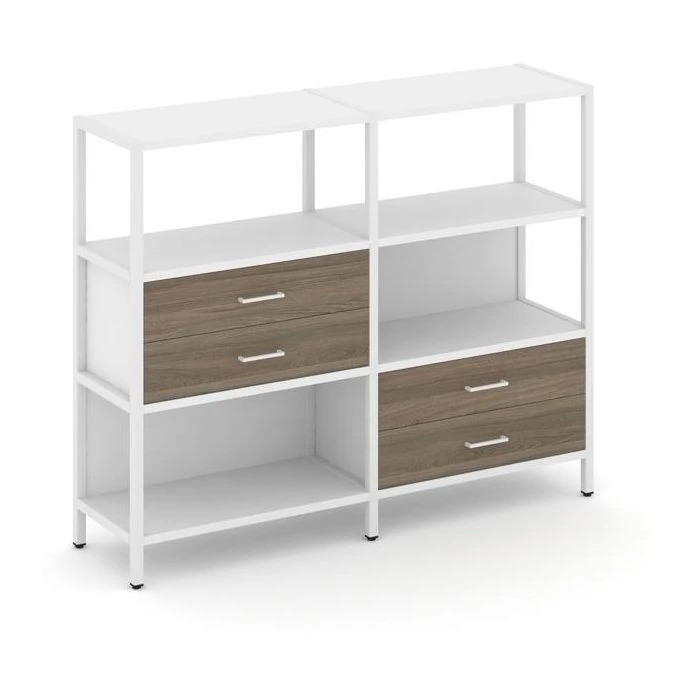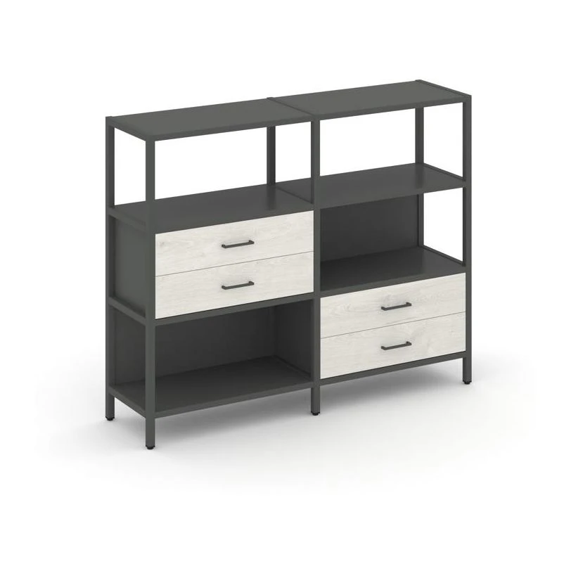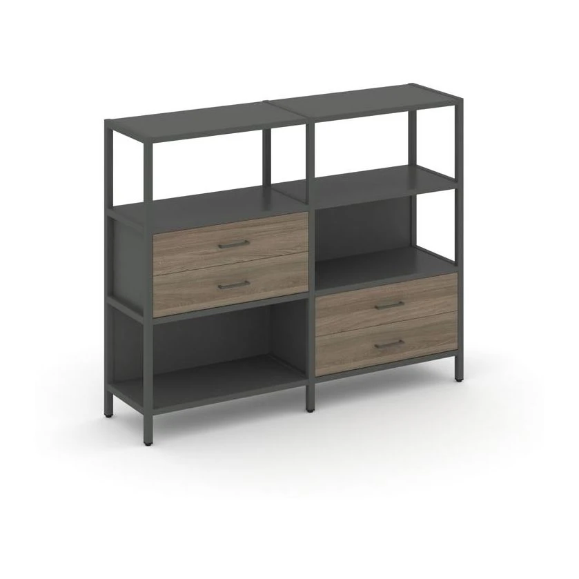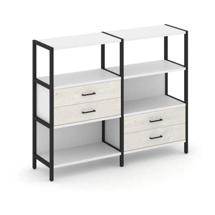 Двухсекционный стеллаж трехярусный с ящиками на двух ярусах 1590х400х1246 Шелф Систем / Shelf System