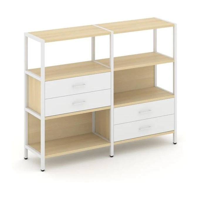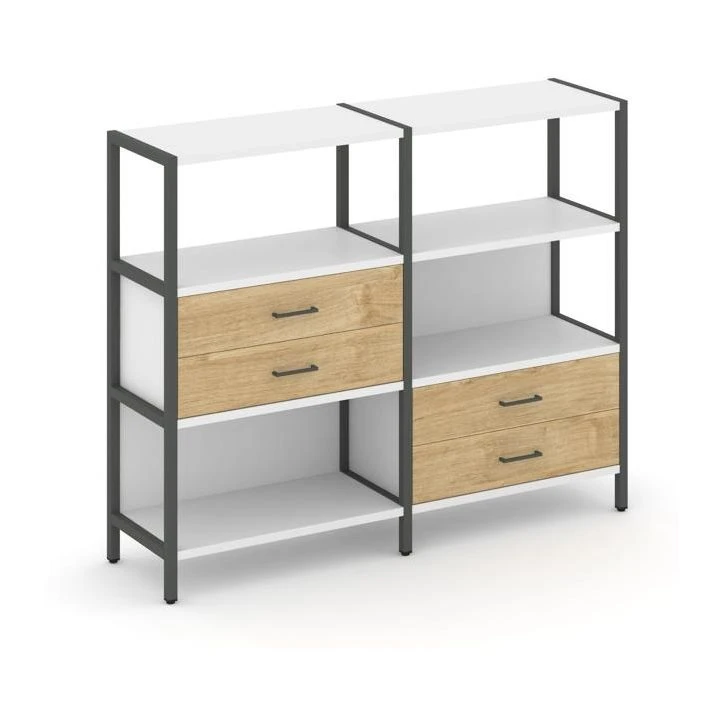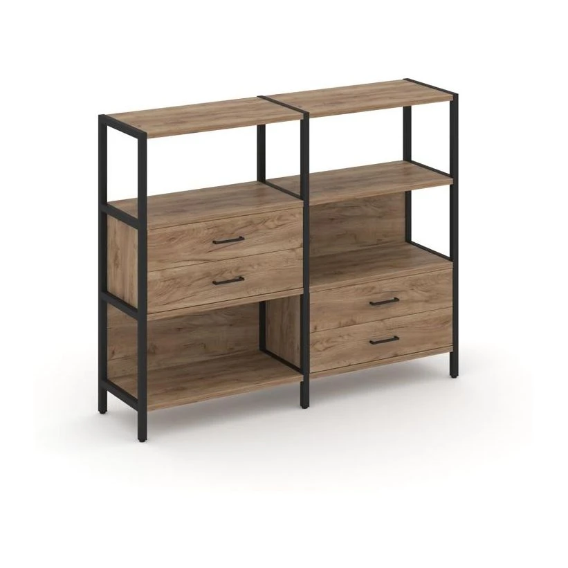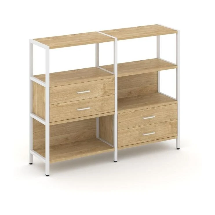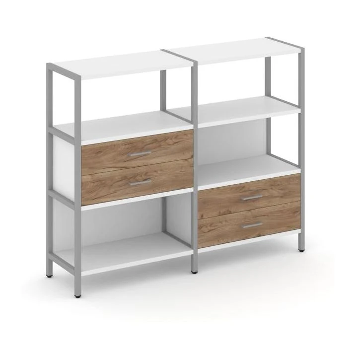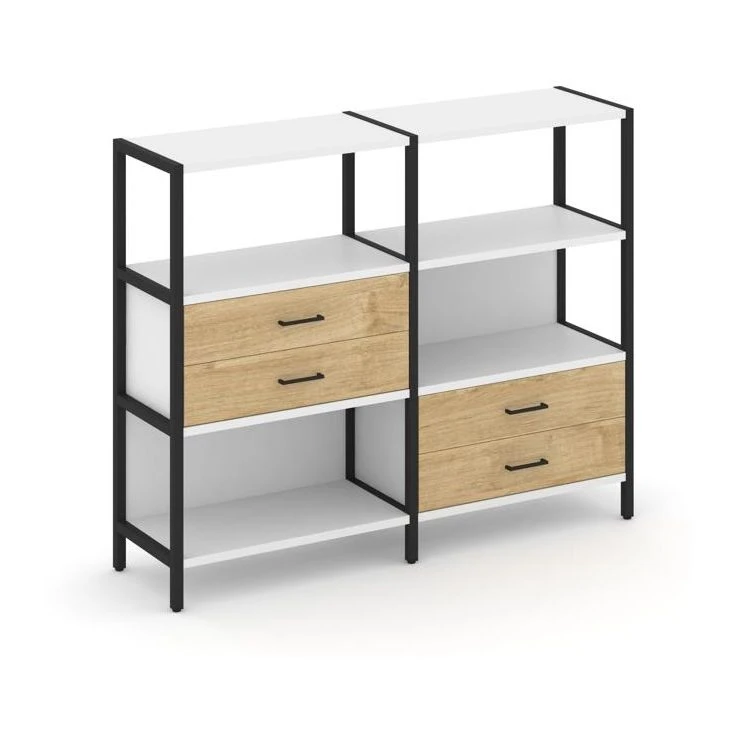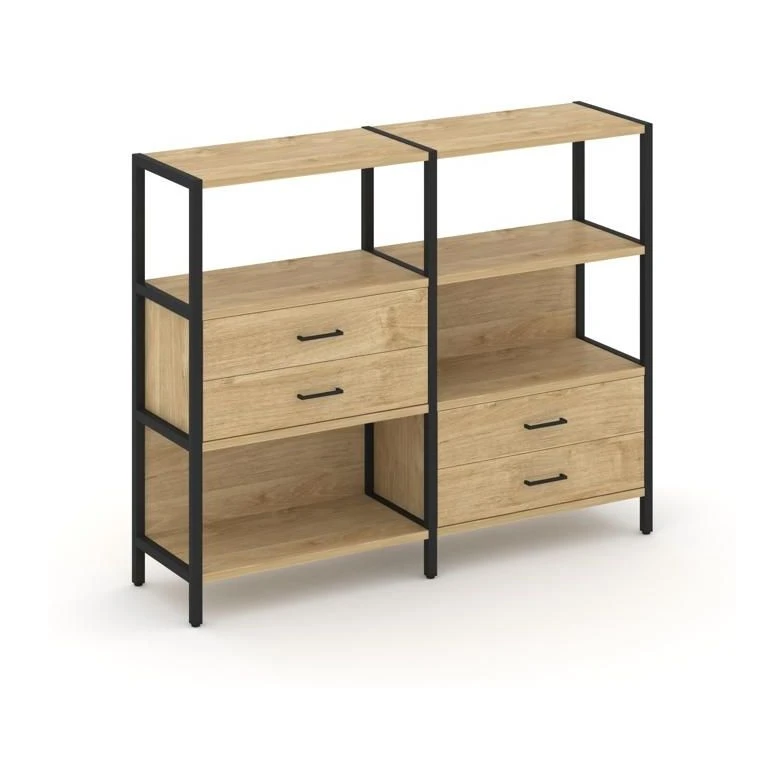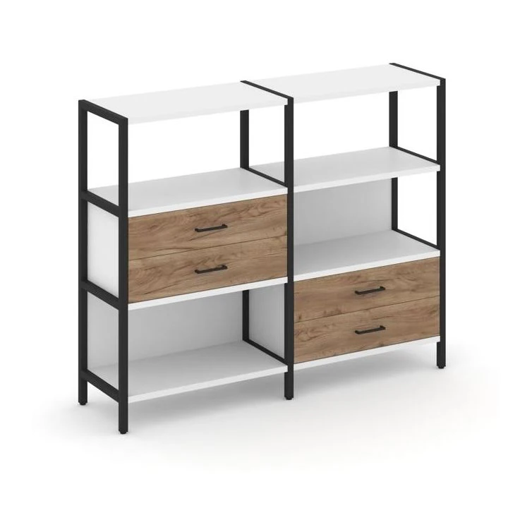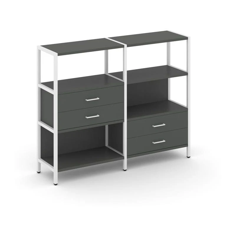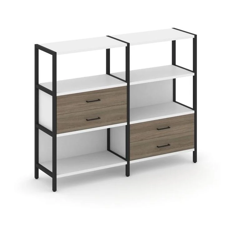 Двухсекционный стеллаж трехярусный с ящиками на двух ярусах 1590х400х1246 Шелф Систем / Shelf System