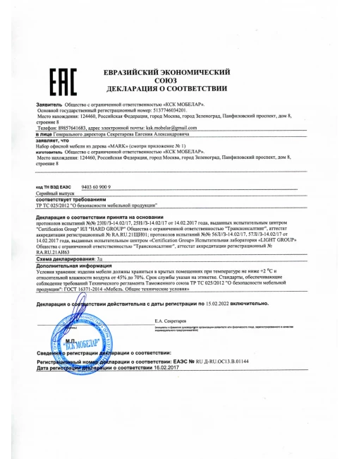 Все наши товары поставляются с гарантией 12 месяцев на все производственные дефекты с момента выдачи гарантийного талона или накладной, исключением являются акустические кабины (24 месяца) и некоторые модели эргономичных кресел (от 2 до 10 лет).