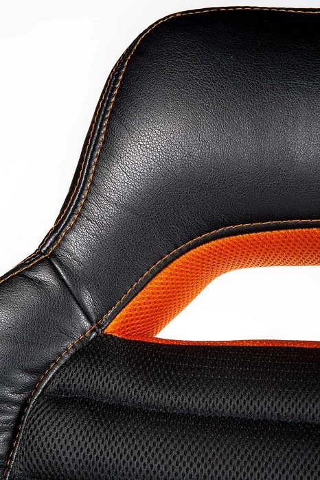 Рассматривая пристально дизайн АЛАБАМЫ стоит отметить оранжевую вставку в изголовье и четко выраженный декоративный шов, в сочетании со вставками на ручках и лучах основания, все это формирует спортивный стиль, характерный для атрибутов геймера. К тому же естественный изгиб в области поясницы, форма подлокотников, высокий подголовник, — все это обеспечивает комфортную посадку и позволяет находиться в сидячем положении в течение многих часов.