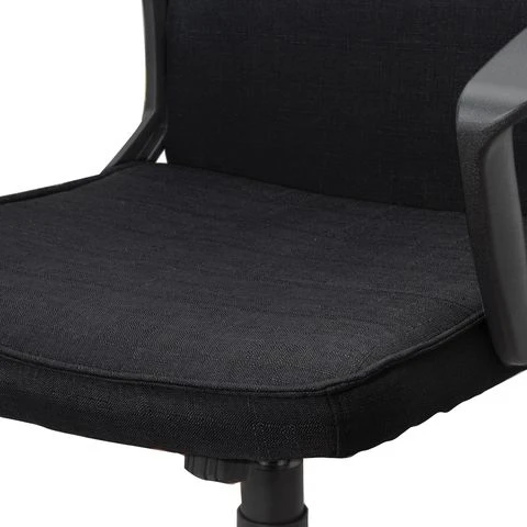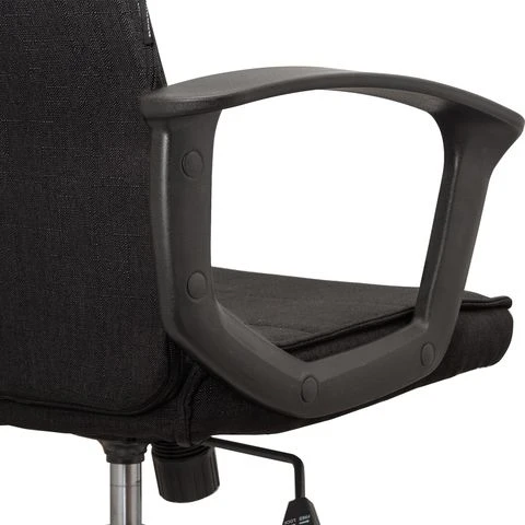 В производстве применены новейшие материалы и технологии, что и позволило данному товару иметь столь демократичную стоимость. Нейлоновые подлокотники и крестовина отличаются прочностью, к тому же пять лучей имеют верхний износостойкий слой. Идеальна данная модель и для домашних интерьеров, универсальный цвет, тканевая обтяжка и компактные размеры позволяют вписать ее, не загромождая пространство при этом.