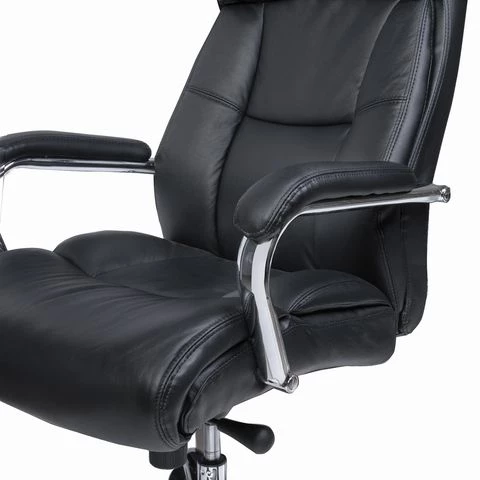 Массивность, хром, черная натуральная кожа — все это характеризует кресло Brabix Phaeton EX 502 с первого взгляда. Увеличенное посадочное место шириной 56 см и глубиной 51 см с комфортом разместит крупного не только по статусу руководителя. Свободно выдерживает данная модель до 120 кг веса пользователя. Сочетание современных материалов и опций делает его актуальным для самых передовых интерьеров и динамичных владельцев.