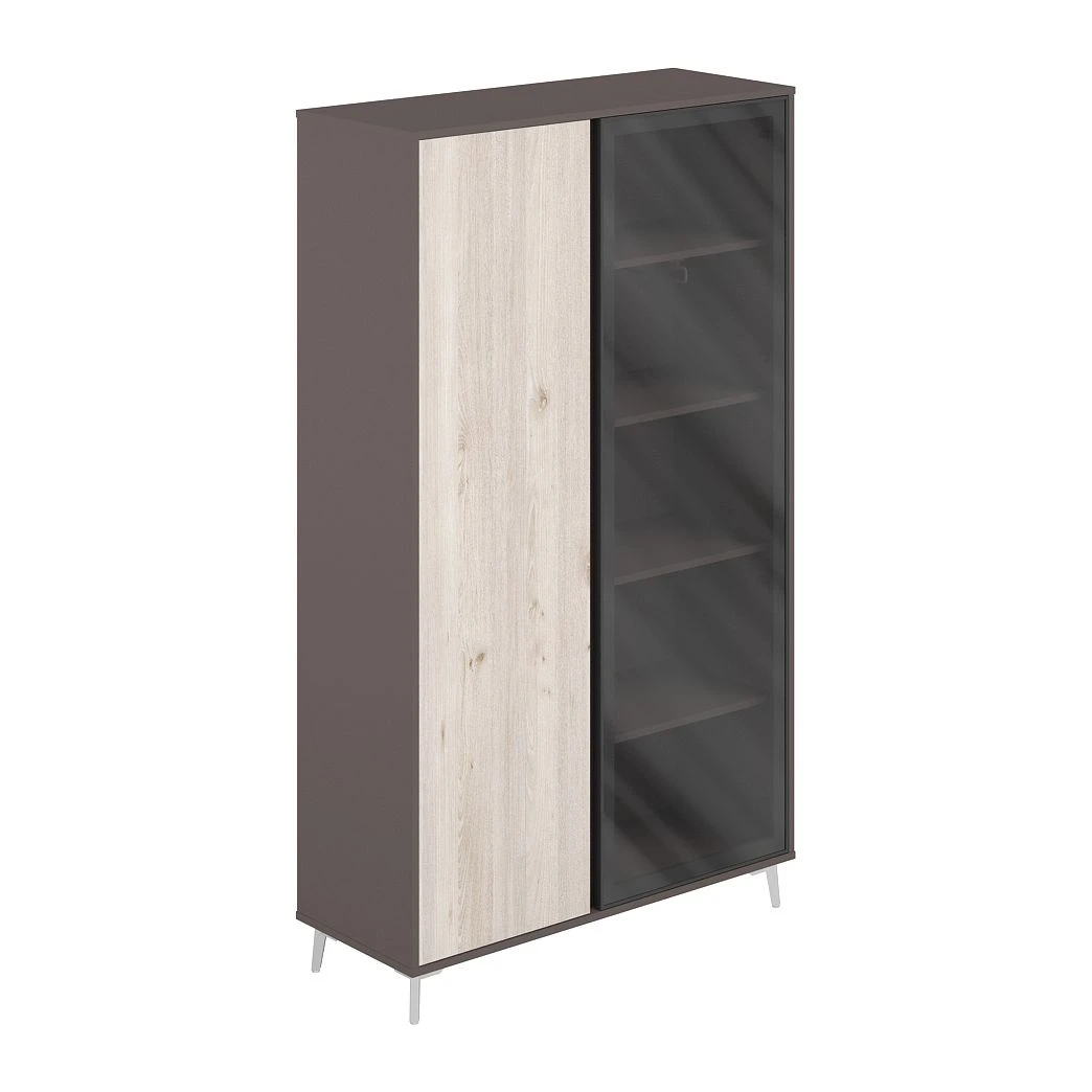 Шкаф высокий комбинированый (ЛДСП/Стекло) 1166х450х2000 Сирио / Sirio Вольфрам/Дуб тоскана