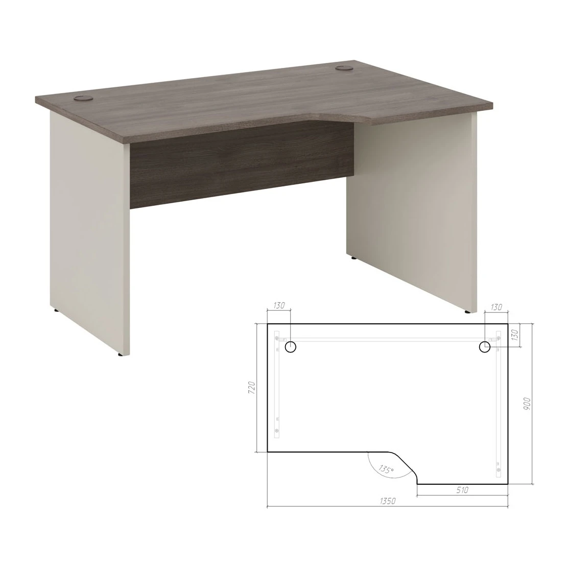 Стол эргономичный правый 135 Нью Лайн / New Line Дуб Шамони темный