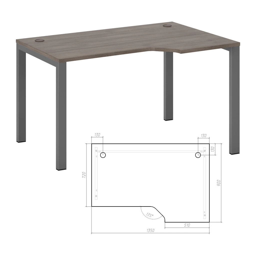 Стол эргономичный правый на металлоопорах 135 Нью Лайн / New Line Дуб Шамони темный