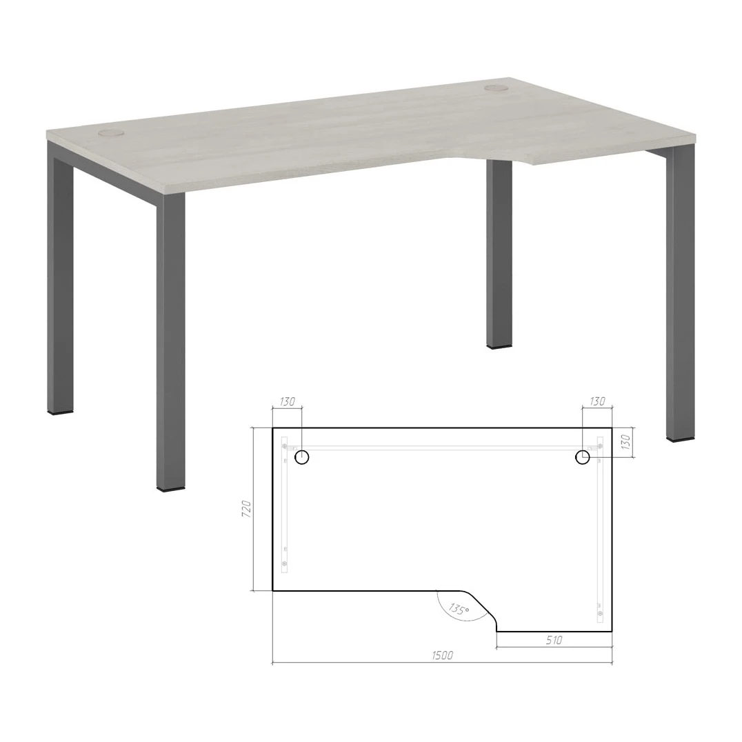 Стол эргономичный правый на металлоопорах 150 Нью Лайн / New Line Дуб Шамони светлый