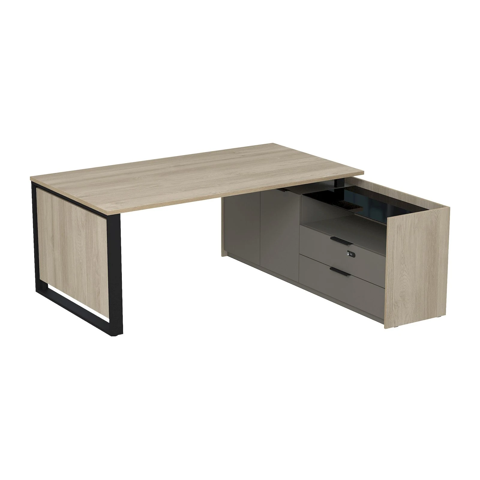 Стол рабочий на опорной двусост тумбе, с ящ, с код замком 1860x1768x750 МАГНЕТИК / MAGNETIC